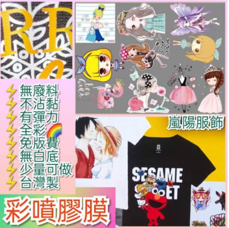 彩噴膠印技術少量可做彩色噴墨有彈性柯式燙畫無廢料膠印膠轉洗水標環保熱轉印燙印加工環保袋嵐陽襪子泳衣健身服內衣鞋子彩噴