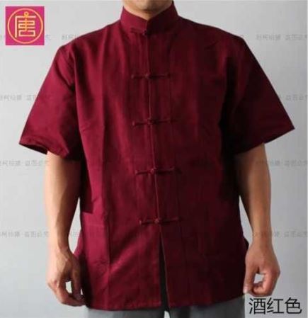買三送一 復古時尚老粗布短袖唐裝上衣送唐裝褲中國風純棉加大中式男女功夫太極晨練表演運動黑灰藏青米色咖啡白卡其嵐陽服飾