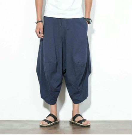 首頁 武術服飾用品 功夫褲 嵐陽服飾第二件七折483 復古中國風棉麻哈倫褲 七分棉麻寬鬆休閒褲闊腿褲潮男寬腿褲功夫褲胯褲