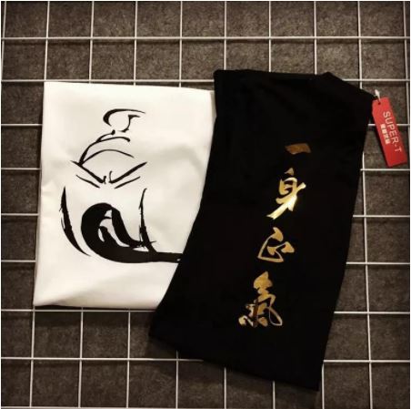 關公燙金一身正氣 嵐陽服飾臺灣製潮春夏情侶潮T男短袖T卹寬鬆加大中國風文字印花純棉打底衫漢字